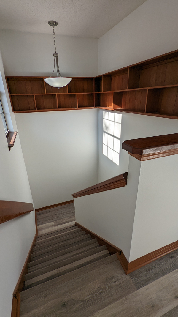 formal dining, half bath downstairs. Upstairs 2 bedrooms,